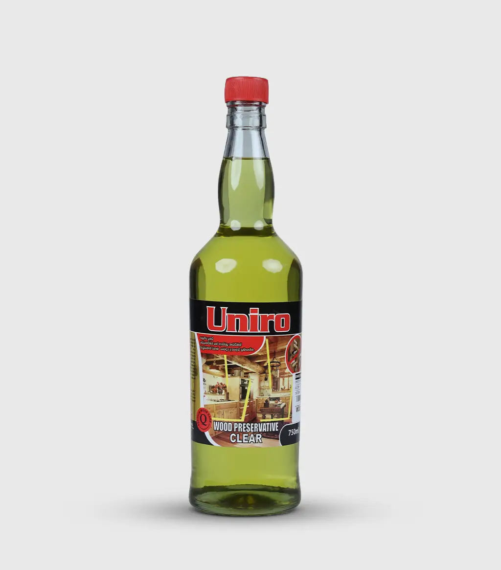 Uniro Wood Preservative is a clear, quick-drying phenolic-based solution that offers deep protection against mould, mildew, termites, and wood-boring insects. Ideal for use before painting or varnishing.